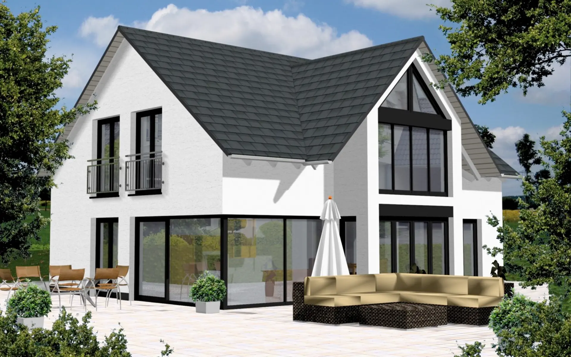 Das Fossano verbindet klassische Dachhaus-Architektur mit einem modernen, offenen Wohnkonzept und einer besonders spannenden Raumwirkung durch integrierte Lufträume. Die Architektur wirkt klar und zeitlos, während großzügige Fensterflächen das Haus mit Tageslicht füllen und eine freundliche, einladende Atmosphäre schaffen. Durch die durchdachte Aufteilung über drei Ebenen entsteht ein Zuhause, das Familienleben, Rückzug und Funktionalität harmonisch miteinander vereint.