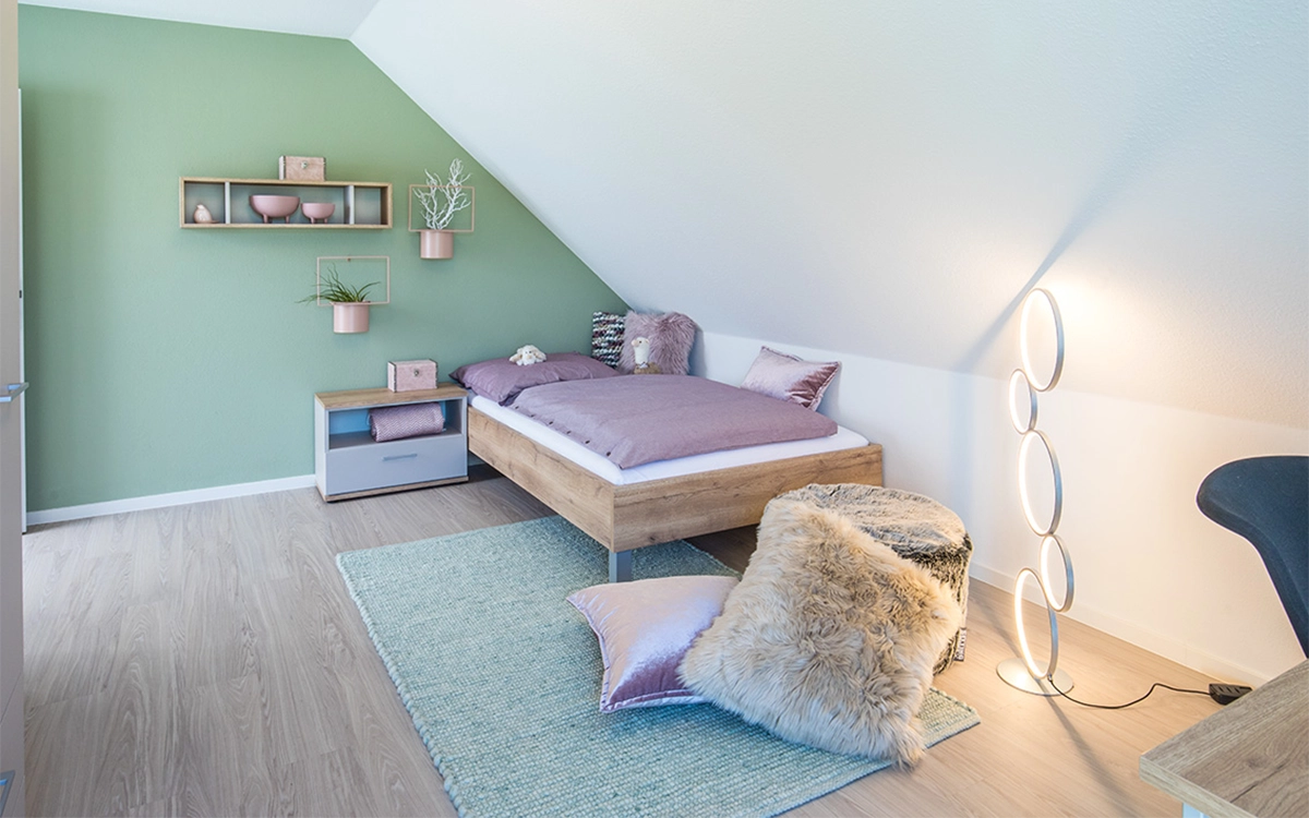 Im Dachgeschoss sorgen Schlafzimmer und Bad für einen ruhigen Rückzugsbereich. Ergänzt wird das Raumangebot durch weitere flexibel nutzbare Zimmer, die sich ganz an Ihre Lebenssituation anpassen lassen – ob als Arbeiten, Kinder-, Gäste- oder Hobbyraum. Ein durchdachter Grundriss, der zeigt, wie viel Wohnqualität auch auf kompakter Fläche möglich ist.