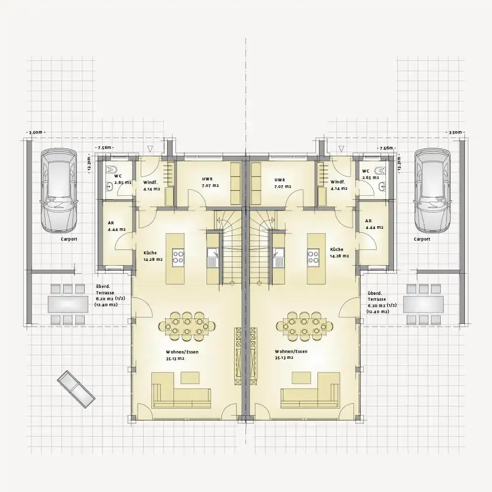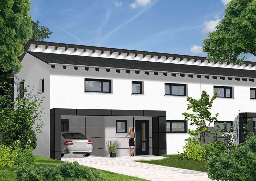 Das Doppelhaus Olbia überzeugt durch eine klar strukturierte Architektur, die Privatsphäre und Großzügigkeit harmonisch miteinander verbindet. Zwei spiegelbildlich angelegte Haushälften schaffen ein ausgewogenes Gesamtbild und bieten gleichzeitig eigenständige, abgeschlossene Wohneinheiten – ideal für Familien, Generationenwohnen oder Kapitalanleger.