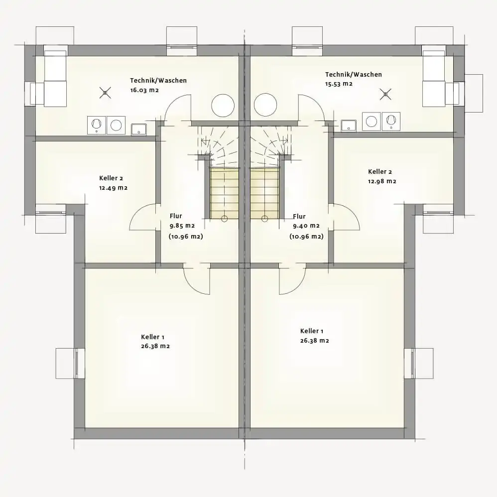 Das Kellergeschoss ergänzt das Wohnkonzept um großzügige Nutz- und Technikflächen und schafft wertvollen Stauraum sowie Platz für Hobby, Hauswirtschaft oder Technik. Insgesamt bietet das Olbia ein durchdachtes Raumerlebnis mit klaren Strukturen, hoher Alltagstauglichkeit und einer Architektur, die gemeinsames Wohnen und individuelle Rückzugsorte gleichermaßen ermöglicht.