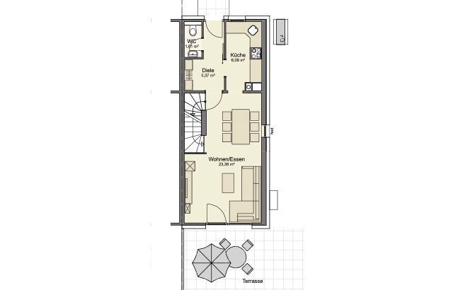 Dieses moderne Reihenendhaus bietet durchdachten Wohnkomfort auf mehreren Ebenen und ist ideal für Familien, die Wert auf klare Grundrisse und zeitgemäßes Wohnen legen. Der offene Wohn- und Essbereich im Erdgeschoss überzeugt mit viel Tageslicht und direktem Zugang zur Terrasse, während Küche und Gäste-WC den Alltag funktional ergänzen. Im Obergeschoss stehen zwei großzügige Kinderzimmer sowie ein modernes Familienbad zur Verfügung. Das Dachgeschoss bildet mit Schlafzimmer, Ankleide und eigenem Bad einen ruhigen Rückzugsort. Zusätzliche Kellerräume schaffen wertvollen Stauraum und Platz für Technik und Hauswirtschaft. Als schlüsselfertiges All-in-One-Angebot inklusive Grundstück und Garten ist dieses Haus sofort bereit für den Einzug.